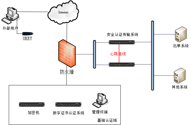 - 1) 安全认证网关部署在防火墙之后,热备部署。部署中心化、简单化,不改变整体网络的结构;